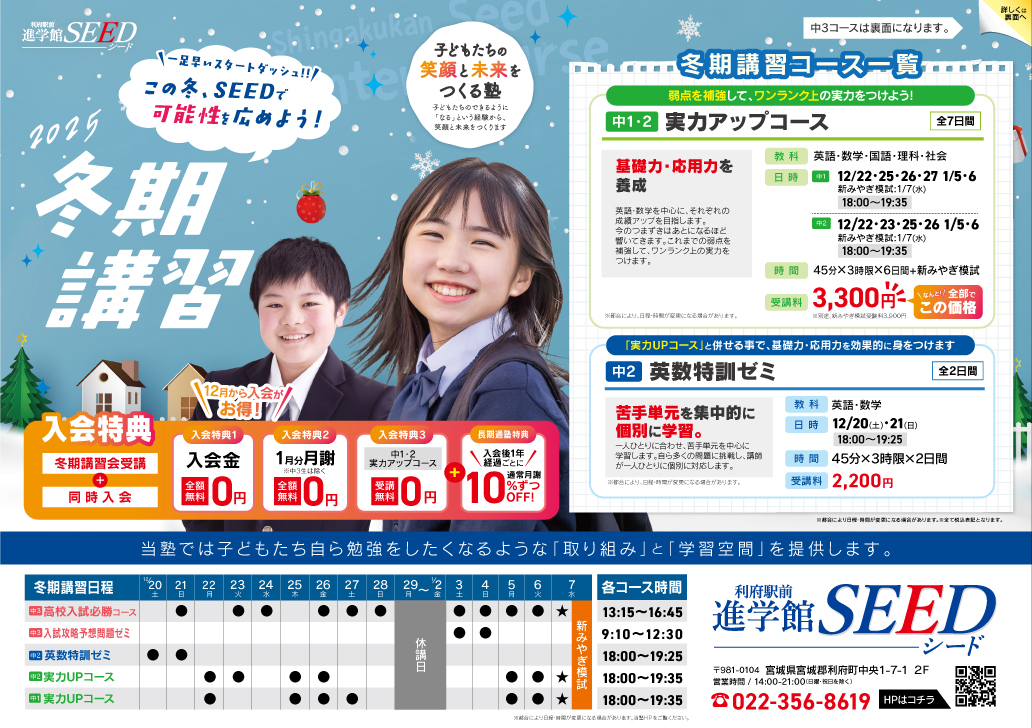 宮城県の利府町にある進学館SEEDは、「教育を通じて、社会貢献」という理念を掲げて2019年3月に利府駅前に新規開校しました。